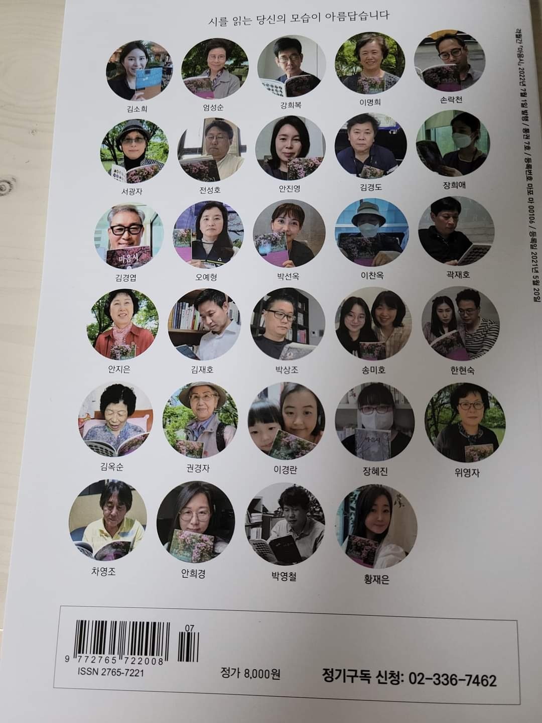 전에 바보클럽 게시판에 제 시 한편이 마음시 월간지에 실린걸 제가 올렸었는데..그때 그러고나서 몇달뒤에 마음시 월간지에 시를 쓰셔서 실린 시인님들의 사진을 한데 모아서 월간지 뒷면에 실었는데..저도 포함이 되어있어서